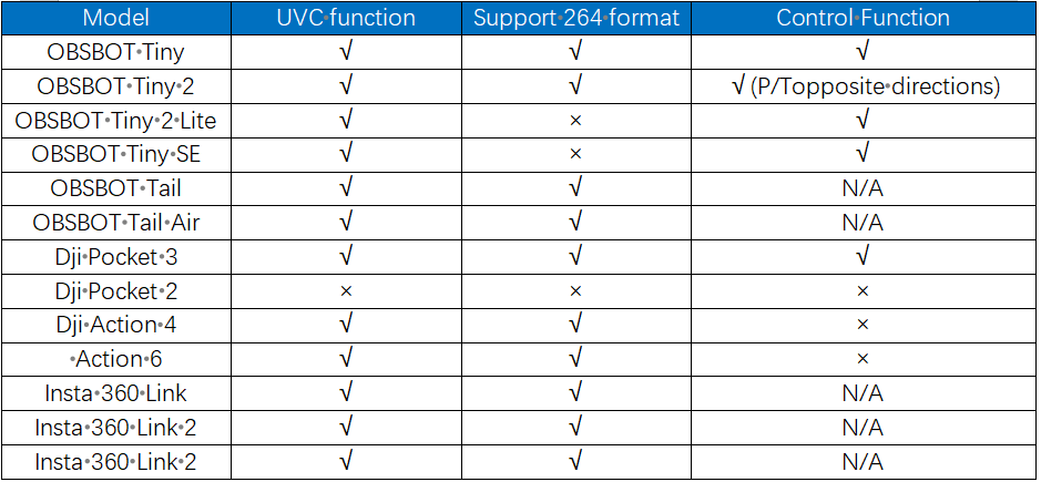 - For DJI series cameras, if UVC is not detected, please try upgrading the UVC camera first.