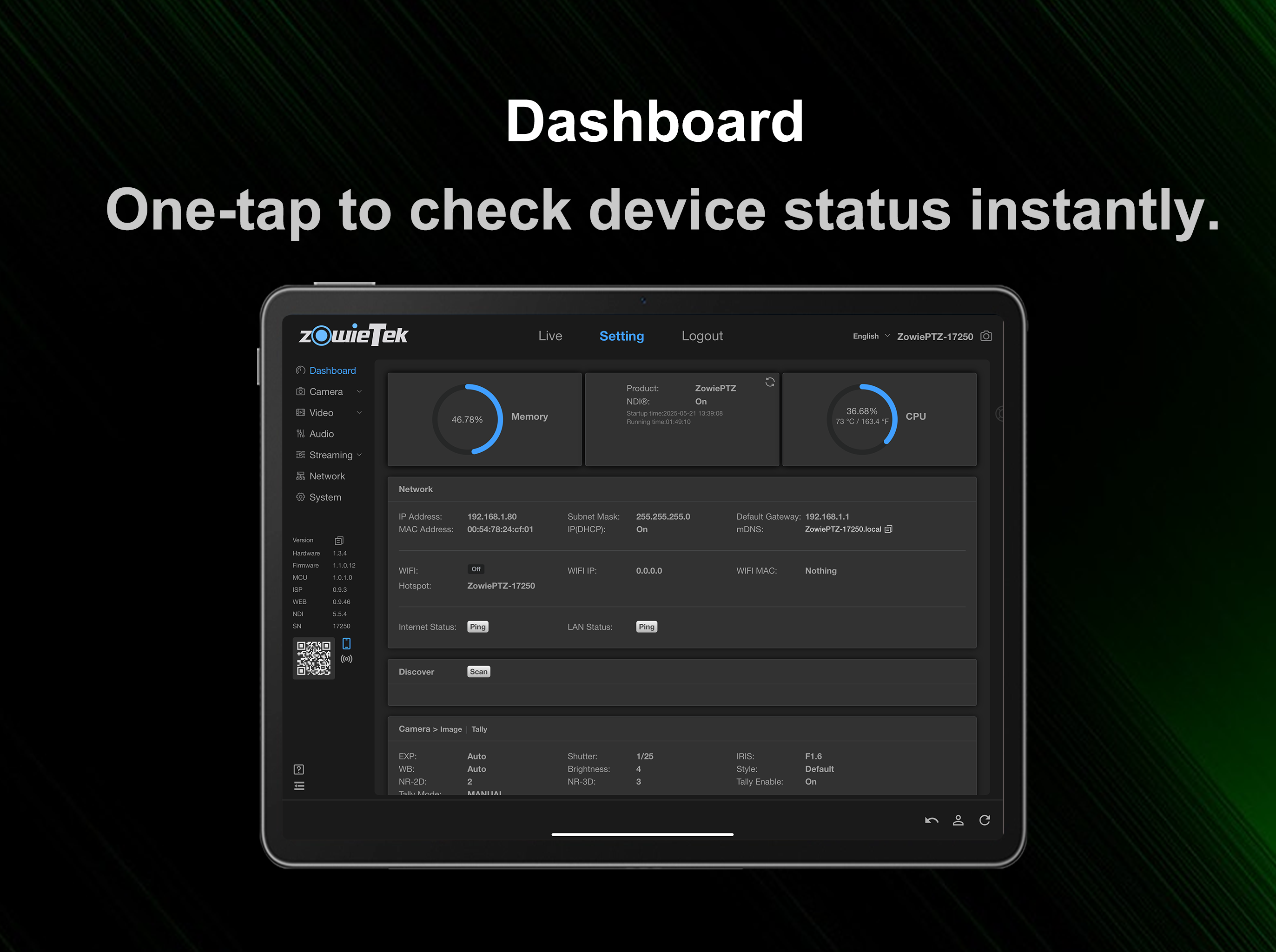 ZowieX empowers users to monitor, control, and configure a full range of Zowietek devices—including ZowiePTZ, ZowieCam, ZowieBox, and ZowieREC—directly from their smartphone or tablet.