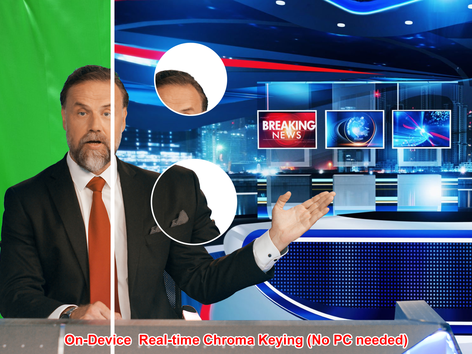 High-performance hardware-level Real-time Chroma Keying. Built-in AI algorithms handle complex edge hair details and shadows, delivering clean green-screen removal directly within the encoding pipeline for instant virtual studio output.
